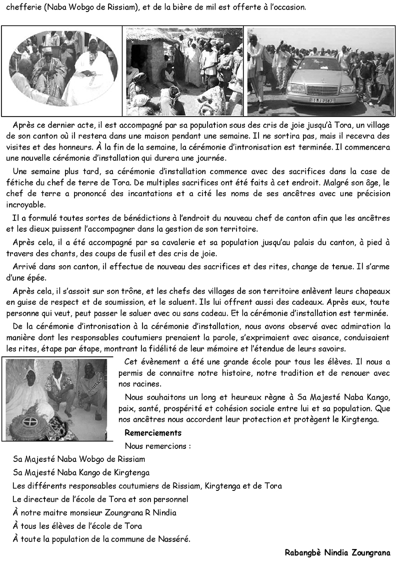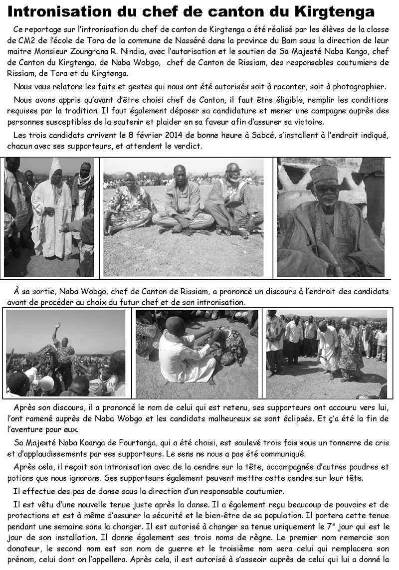 Intronisation du chef de canton