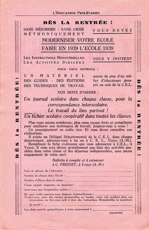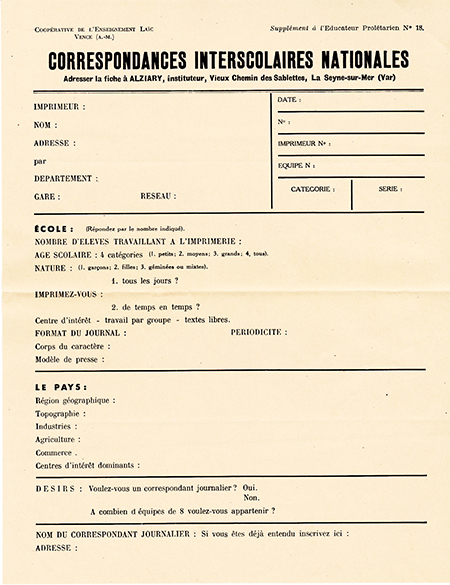 La guerre est imminente. Nous sommes à l'été 1939. S'il reste une seule technique à sauvegarder selon Freinet, c'est le Journal, mais le journal pour la correspondance interscolaire.